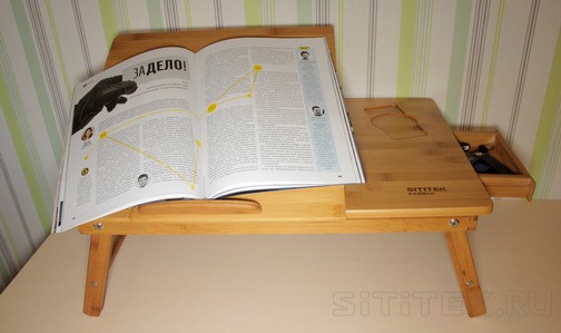 Столик для ноутбука "SITITEK Bamboo 2" имеет встроенный выдвижной ящичек. В него можно разместить различные мелкие принадлежности и аксессуары, чтобы не потерять их, и они всегда будут под рукой. Он особенно удобен для хранения пишущих ручек, карт памяти, флэшек и всего прочего, что может понадобиться при чтении или работе за ноутбуком.