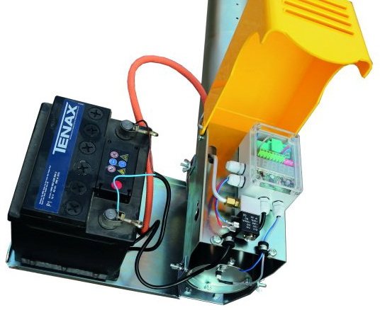 Громпушка рассчитана для работы на открытых территориях, где обычно нет электричества, поэтому в ней используется аккумулятор 12 В. Стандартная автомобильная батарея на 60 А/ч обеспечит автономную работу в течение 4 месяцев. Все составные части устройства устойчивы к осадкам, не боятся солнца и т.д.